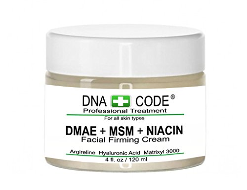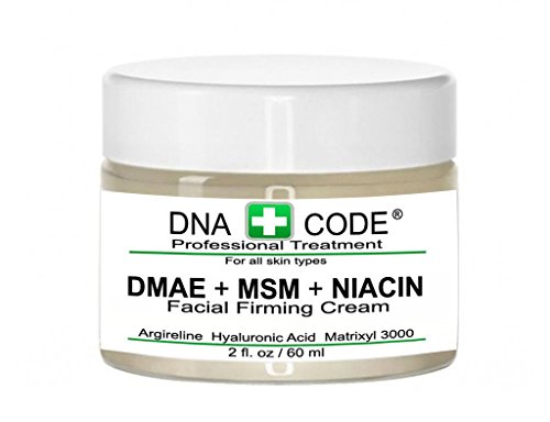 This high concentration of DMAE + MSM + NIACINAMIDE Firming Cream w/ 100% pure Hyaluronic Acid, Argireline and Matrixyl 3000 ensures your skin's ability to quickly mend itself and firm up stressed and oversized pores. Giving your skin a smooth and clear surface that creates a glow of youth. This cream is light and can be put on, over or under makeup. The firm appearance occurs within 20 minutes. Significant improvement in:Overall appearance of aging skin, forehead lines,coarse wrinkles,eye area, lip area and smile lines, sagging skin. 72% Organic and 100% Vegan.
