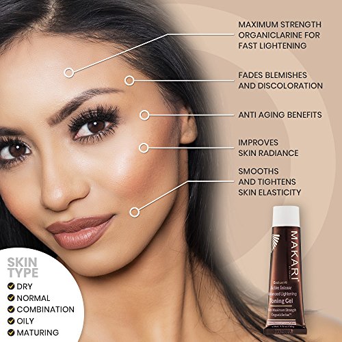 Luxury isn't limited to any one skin type. For years, women of color have sought high-end skincare products designed exclusively for their unique concerns. Finally, with the Exclusive collection by Makari, everyone can achieve the bright, glowing complexion they've always dreamed of. Specially formulated for dry, mature skin, our powerful Exclusive Toning Gel is enriched with OrganiclarineTM, a naturally derived active whitening agent. Apply to the face up to three times a week, and watch as dark spots, acne scars, pregnancy pigmentation, and freckles fade away for a fresh, youthful, even appearance. This non-greasy treatment contains plant-based extracts, so even sensitive skin types can achieve their ideal shade of beautiful. To rewind years of age and environmental damage, use this facial toning gel routinely with Makari's complete line of Exclusive lightening products.