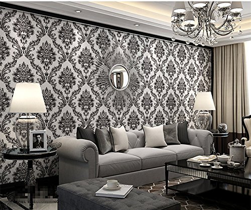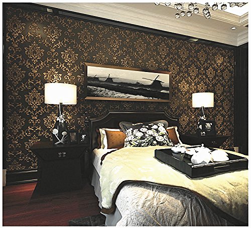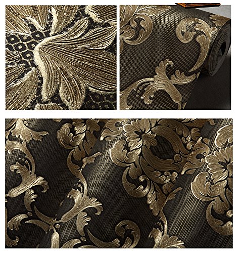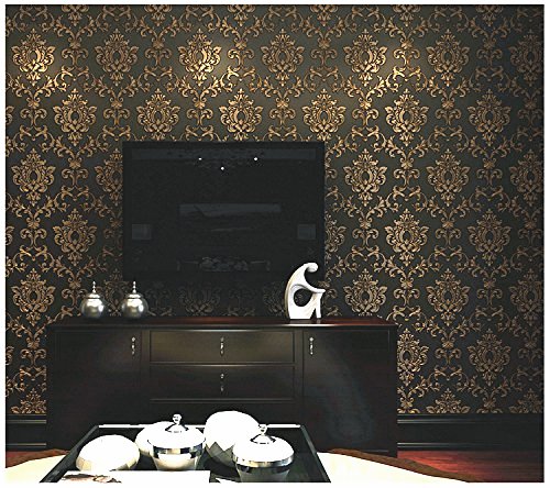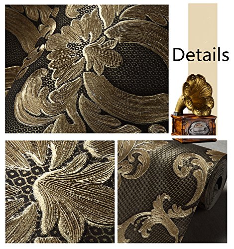 -. Title : Blooming Wall: Non-woven Elegant European Flocking Embossed Textured Damasks Wallpaper Wall Mural Wallpaper for Living Room Bedroom, 20.8 In32.8 Ft=57 Sq.ft,Gold/Black