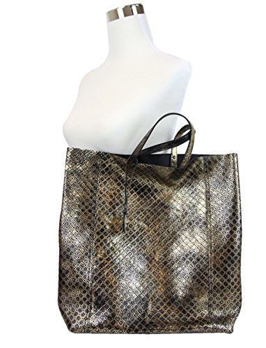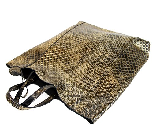 Bottega Veneta Women's Gold/Black Leather Intrecciomirage Tote Bag 298778