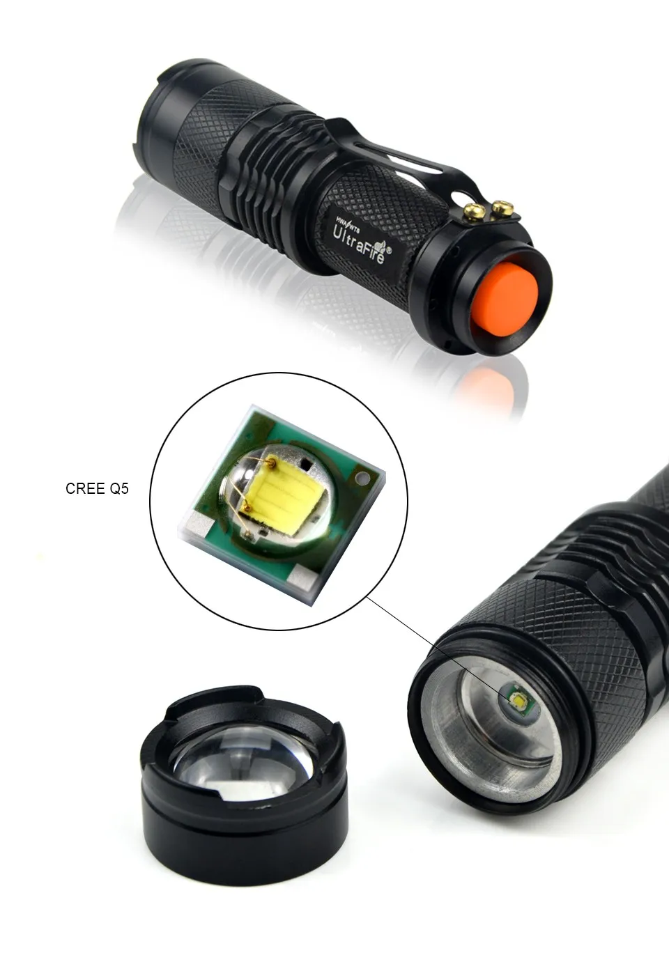 1. The body of this flashlight is built of high quality aluminum alloy, and it has a very solid construction