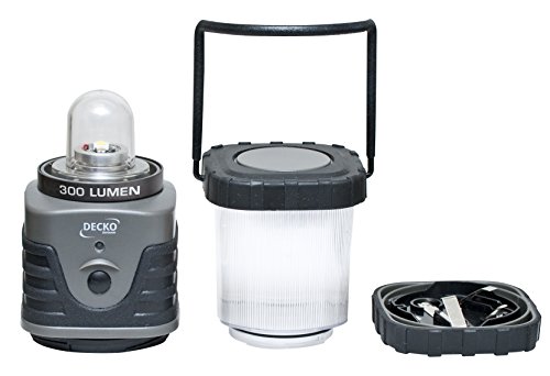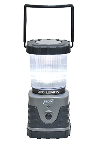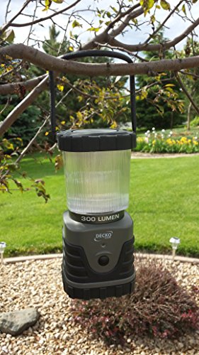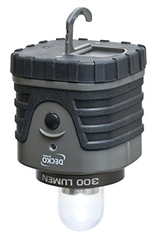 Studio : Decko OutDoor Publisher : Decko OutDoor Binding : Tools Home Improvement Product Description Illuminate your campsite or tent without the worry of open flame or fumes from fuel lanterns with this long-lasting LED light source. Take the Deck Outdoor 30300 personal size LED camping lantern on camping trips, hiking, boating, night barbeques, family picnics and hunting trips or keep it at home for emergencies; waiting out a storm. This lantern features durable ABS construction and is engineered to be water resistant, making it ideal for use in rugged conditions. The lantern base has a convenient fold out hook that provides a way to hang the lantern for hands-free operation to light up your space, be it a tree branch, tent, basement, garage or a backyard patio. The Deck Outdoor 30300 lantern also provides an incredibly bright 300-lumen light that makes it a useful resource for outdoor adventures as well as for emergency preparedness. This lantern provides bright and long-lasting light using LED technology and the easy push-button operation allows you to operate in either low, high or flashing mode. An easy-find green LED blinks every five seconds when the lantern is off so you can locate it the darkness or for emergencies. Compact and ultra-portable at just 7.25 Inch tall and 3.5 Inch wide, super bright white LED bulbs are powered by three D batteries not included. LED never needs to be replaced. LED bulbs use battery power more efficiently than standard bulbs, greatly reducing the number of batteries needed over the life of the lantern. 0