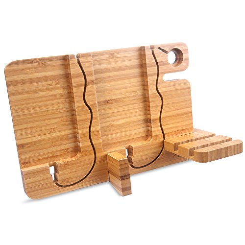 Aerb 5 in 1 Bamboo Charging Dock Station Holder for iWatch and Apple Phones