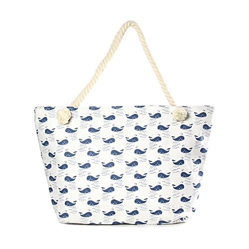 LOF Women's Large Canvas Rope Handle Tote Bag, 19.2X14, Navy