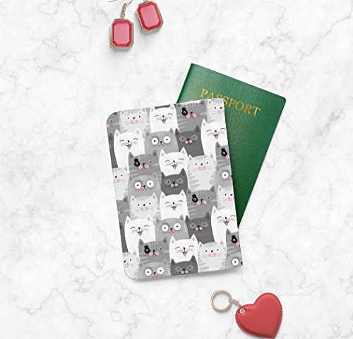 (LOKISHOP)/Accessories/Wallets, Money Key Organizers/DIRECT FROM USA/Cute Cat Pattern Passport Holder - Leather Passport Cover - Vintage Passport Wallet - Travel Ac...