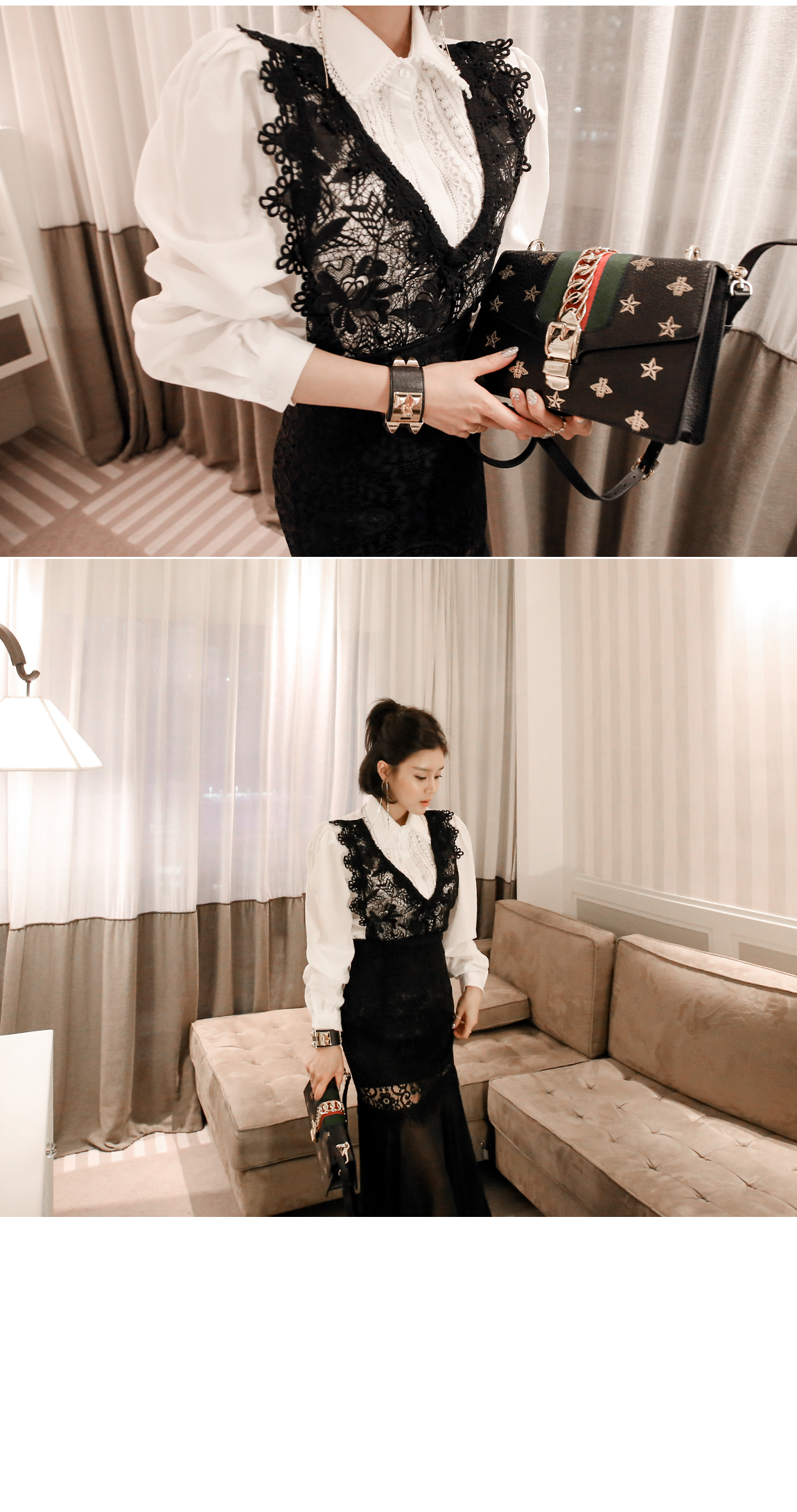 フェミニンなムードのレースのスカートを紹介しています