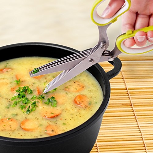 SAVE TIME AND HASSLE. Say good-bye to tedious mincing and chopping with the most useful, fun kitchen gadget ever! Two snips with the sharp, finely balanced 5 blades equals 10 knife chops. One of your favorite kitchen gadgets for your home herb garden!