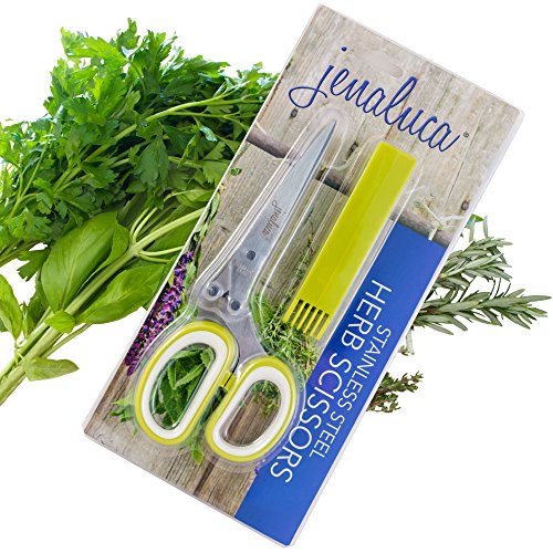 Jenaluca Herb Scissors Stainless Steel - Multipurpose Kitchen Shear with 5 Blades and Cover with Cleaning Comb