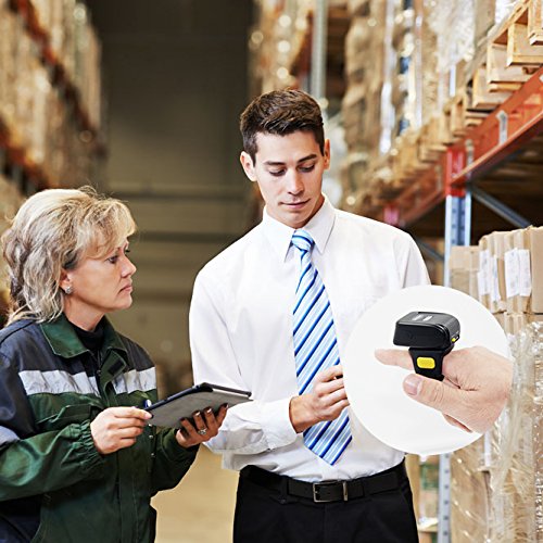 - RINGSTYLE HAND FREE, UNIQUE AND MORE CONVENIENT:Wearing Mini Ring style Bluetooth Wireless barcode scanner can make you do not need to bring goods on desk to scan them, increase warehouse, distribution center and retail store work efficiency.