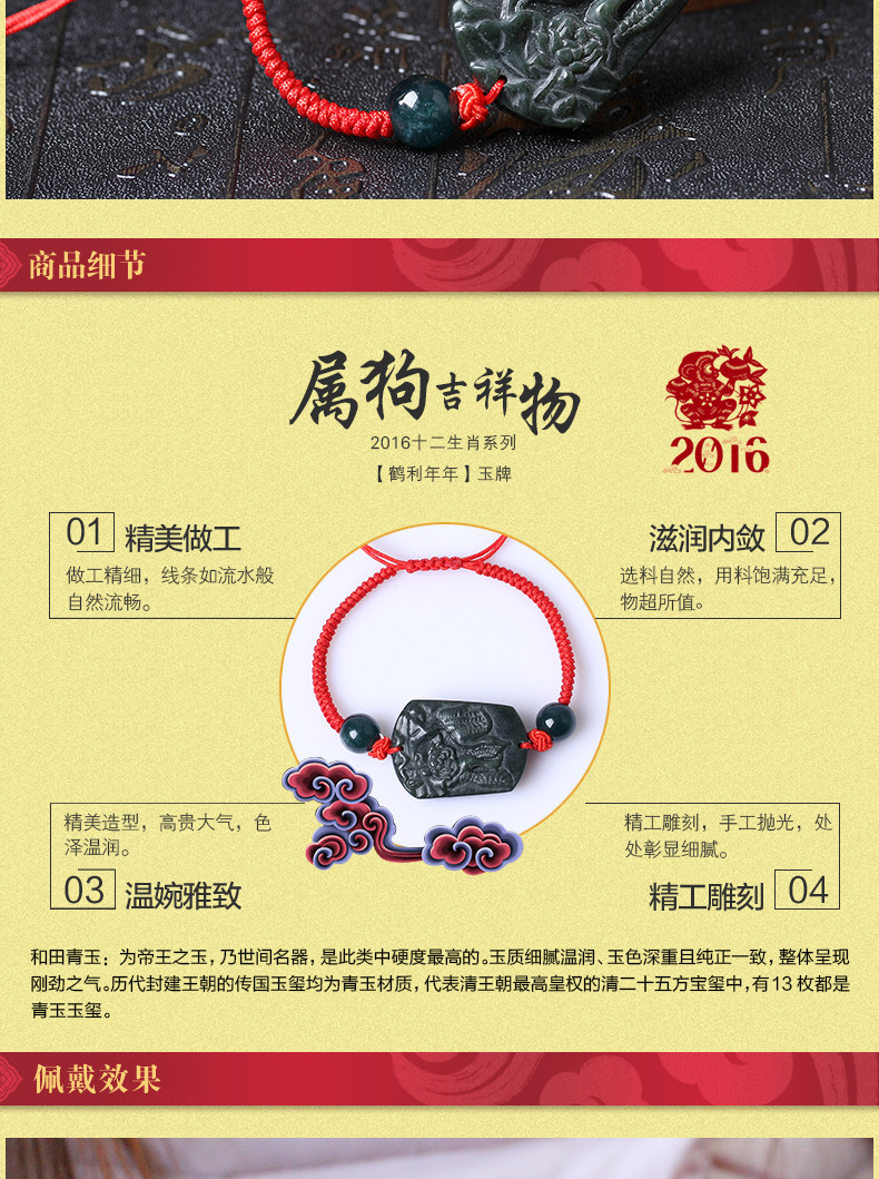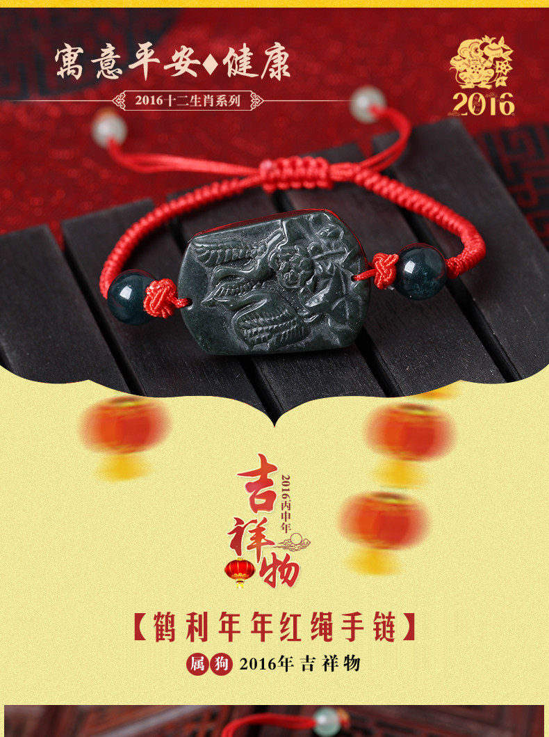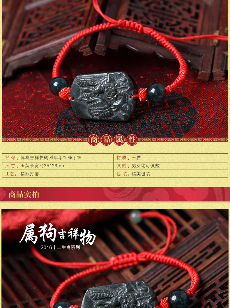 开光十二生肖属狗吉祥物鹤利年年玉手链平安项坠礼物