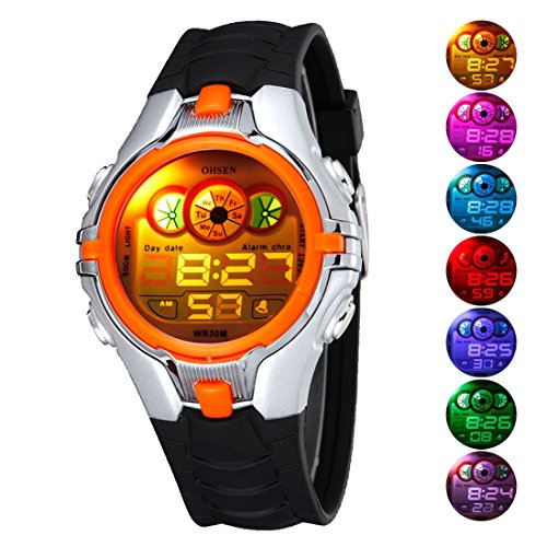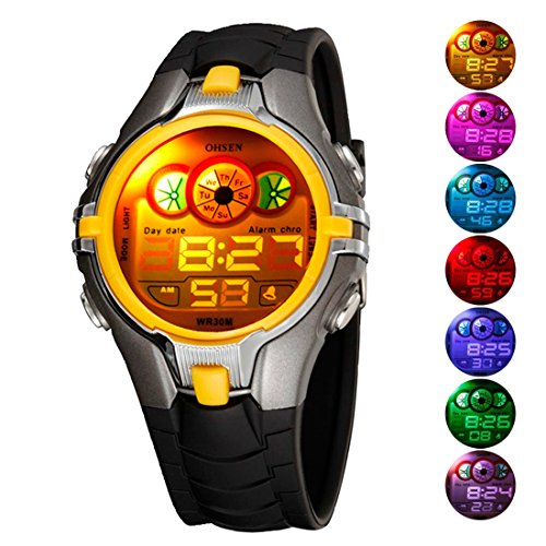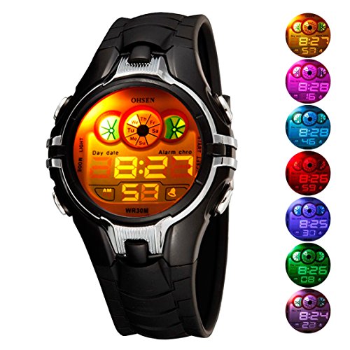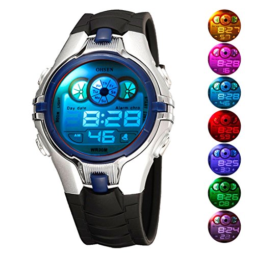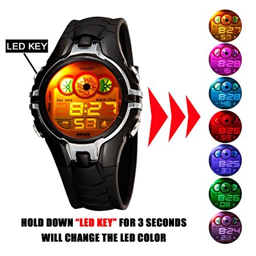 MULTI-FUNCTIONAL: Design Calendar Date Window, Alarm, 30M Waterproof, 7 Colors EL Back Light Display, Shock Resistant, Stopwatch.