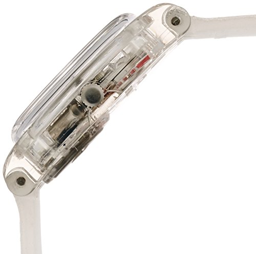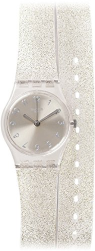Studio : Swatch Publisher : Swatch Binding : Watch Product Description Transparent plastic case with a transparent silicone (double wrap) strap. Fixed transparent plastic bezel. Silver pearl dial with silver-tone hands and Arabic numeral hour markers. Dial Type: Analog. Quartz movement. Plastic crystal. Crystal plexi glass case back. Case diameter: 25 mm. Case thickness: 8 mm. Round case shape. Band width: 20 mm. Tang clasp. Casual watch style. Swatch Glistar Silver Pearl Dial Transaprent Double Wrap) Strap Ladies Watch LK343. 0