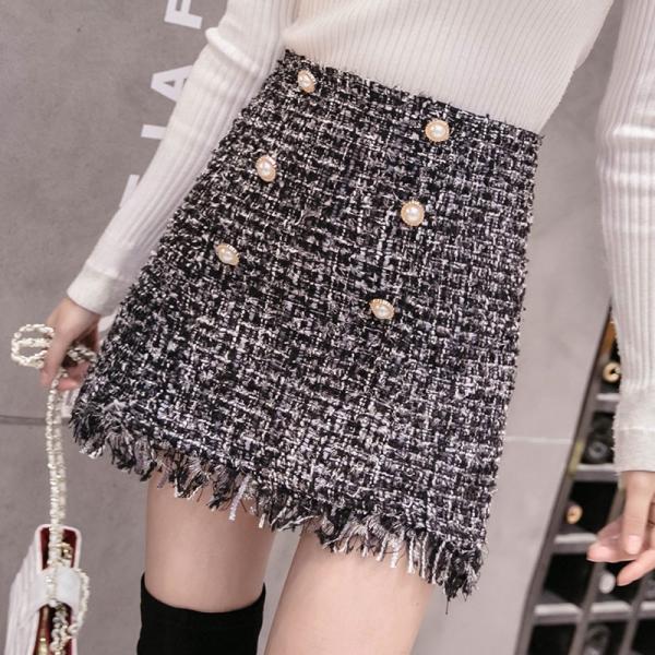 秋冬トレンドのウール素材のミニスカート。