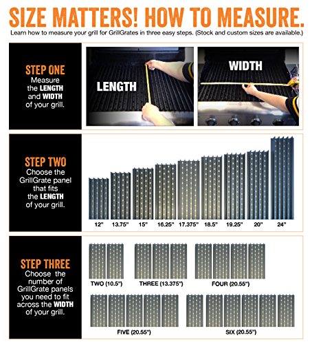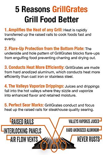 ELIMINATES FLARE-UPS: Stop shuffling your food around to avoid charring. GrillGrates patented design eliminates flare ups so common to all gas grills. The raised rails amplify heat while aluminum conducts heat efficiently to eliminate those pesky hot and cold spots.