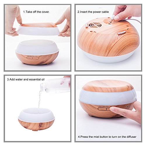 High Capacity - At full capacity of 300 ml, add 1-2 drops of your favorite essential oil per ml, the essential oil diffuser delivers 6-10 hours of an aromatic experience with 25 - 40 sq. ft. of coverage.