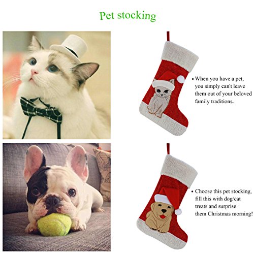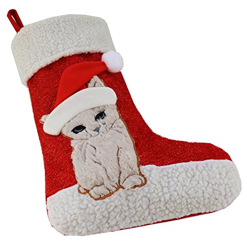 Wewill Christmas Holiday Pet Theme Embroidered Stockings Cute Gift Socks, 20 Inch (Cat)