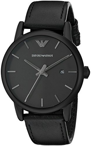 -. Binding : Watch -. Brand : Emporio Armani -. Color : Black -. Department : mens -. EAN : 0723763203845 -. Feature : Round watch featuring logoed black dial with luminous hands, stick indices, and date window at 3 o'clock / 41 mm stainless steel case with mineral dial window / Quartz movement with analog display / Black leather calfskin band with buckle closure / Water resistant to 30 m (99 ft): In general, withstands splashes or brief immersion in water, but not suitable for swimming -. Label : Emporio Armani Watches MFG Code -. Manufacturer : Emporio Armani Watches MFG Code -. Model : AR1732 -. MPN : AR1732 -. PackageQuantity : 1 -. PartNumber : AR1732 -. ProductGroup : Watch -. ProductTypeName : WATCH -. Publisher : Emporio Armani Watches MFG Code -. Studio : Emporio Armani Watches MFG Code -. Title : Emporio Armani Men's AR1732 Dress Black Leather Watch -. UPC : 720825618029