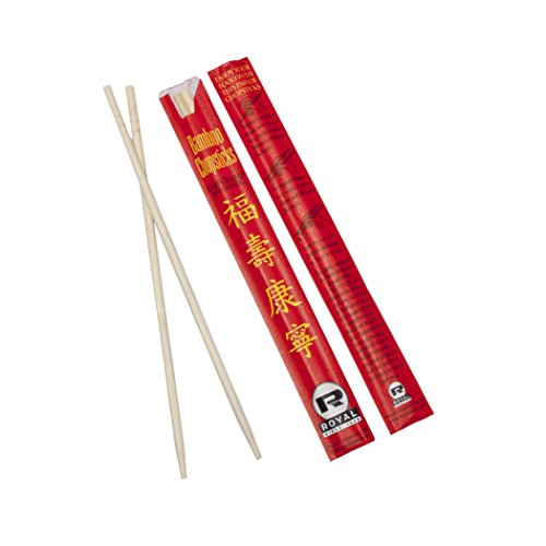 Studio : Royal Paper Publisher : Royal Paper Binding : Kitchen Product Description Bamboo chopsticks are traditional eating utensils used in China, Japan, and Southeast Asia. Royal offers premium quality Bamboo Chopsticks that are smooth and splinter free and carved end which is easy to use. Perfect for any home or any size food establishment serving Asian cuisine. Also used for food preparation. Royal's 9" long bamboo chopsticks come pre-separated, making it easy to dig into delicious cuisine without a struggle! Plus, the red packaging features Chinese proverbs wishing "Good Luck, Long Life, Good Health Well-Being. "Since 1949 ROYAL has manufactured the highest quality in food service disposables - Expect the best, and look for the ROYAL brand. Accept only Genuine Royal Certified product. 0