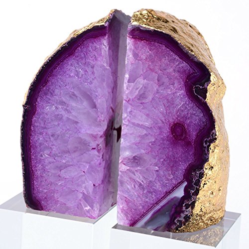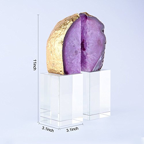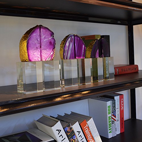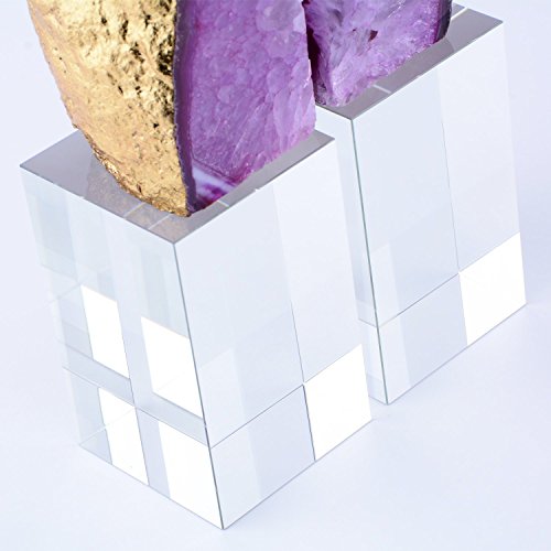 BRLIGHTING Crystal and Agate Bookends Heavy Duty in Purple 12.5 lbs BRAC4108 for office, Shelves and Desk Set of 2