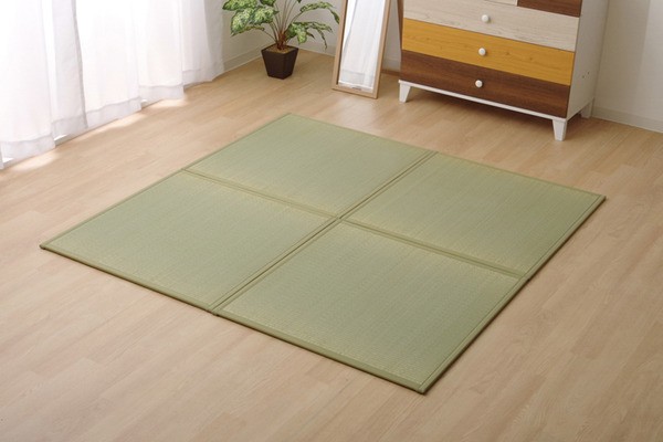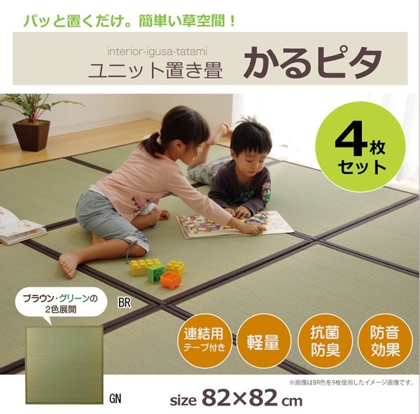 【商品名】い草 置き畳 ユニット畳 国産 半畳 『かるピタ』 グリーン 約82×82cm 4枚組 (裏:滑りにくい加工)