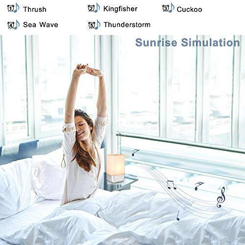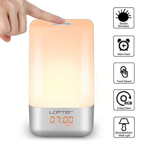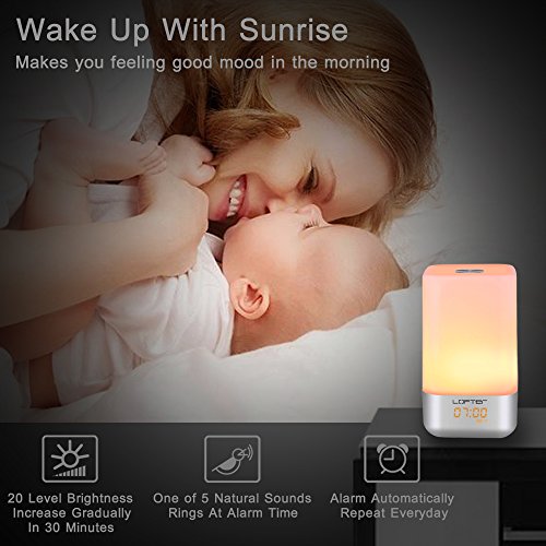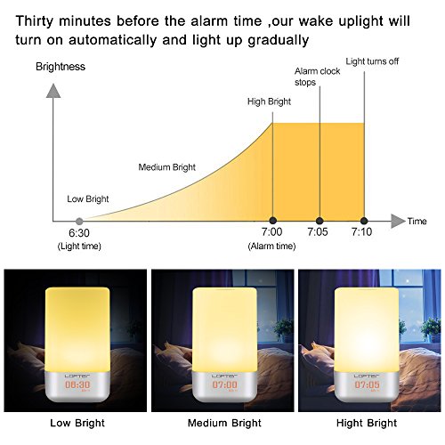 ★ TOUCH CONTROL: 360°Touch activated wake up light alarm clock: Tap anywhere on metal base, easy turn on/ off, Change mode/ brightness/colors as you want, in warm white light mode, 3 brightness levels: Dim--Medium-Bright , 256 RGB color for you can select the color of the light according to your mood
