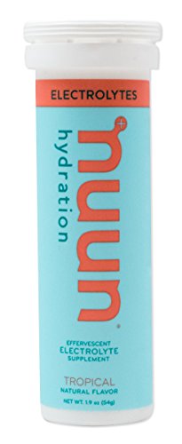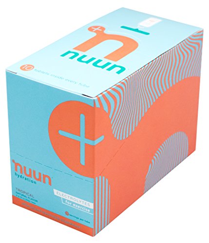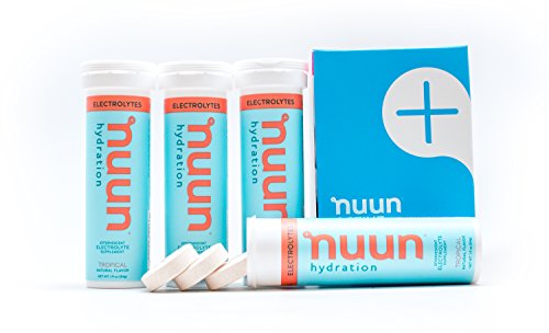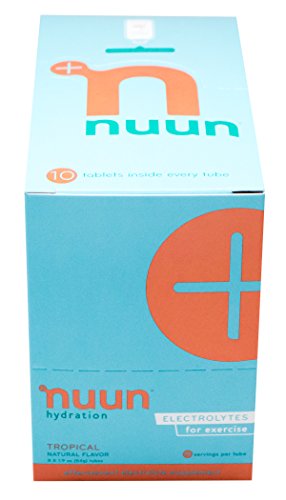 Nuun Hydration: Electrolyte Drink Tablets for Exercise & More. Flavor: Tropical, Box of 4 Tubes (40 Servings). 1g Sugar, Low Calorie (10), Gluten Free, Vegan. Potassium, Magnesium, Sodium & Calcium