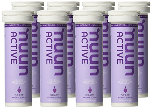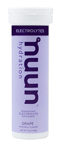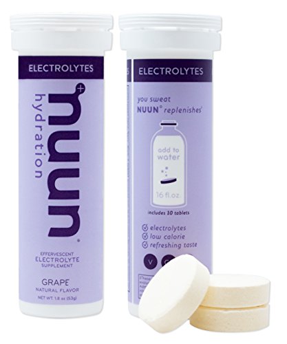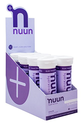 Nuun Hydration: Electrolyte Drink Tablets for Exercise & More. Flavor: Grape, Box of 8 Tubes (80 Servings). 1g Sugar, Low Calorie (10), Gluten Free, Vegan. Potassium, Magnesium, Sodium & Calcium