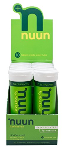 Nuun Hydration: Electrolyte Drink Tablets for Exercise & More. Lemon + Lime, Box of 8 Tubes (80 Servings). 1g Sugar, Low Calorie (10), Gluten Free, Vegan. Potassium, Magnesium, Sodium & Calcium