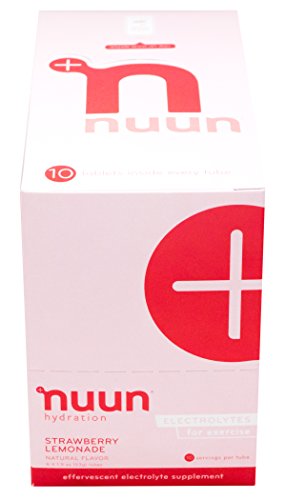 Nuun Hydration: Electrolyte Drink Tablets for Exercise & More. Strawberry Lemonade, Box of 8 Tubes (80 Servings). 1g Sugar, Low Calorie, Gluten Free, Vegan. Potassium, Magnesium, Sodium & Calcium
