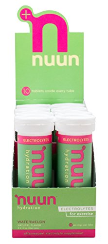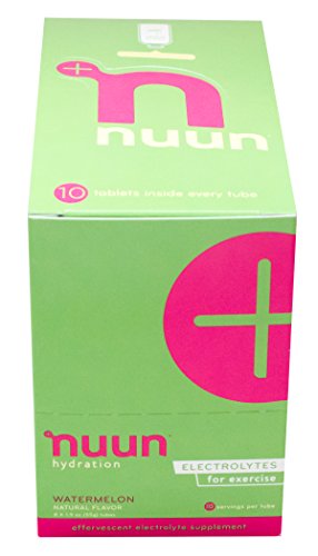 Nuun Hydration: Electrolyte Drink Tablets for Exercise & More. Watermelon, Box of 4 Tubes (40 Servings). 1g Sugar, Low Calorie (10), Gluten Free, Vegan. Potassium, Magnesium, Sodium & Calcium