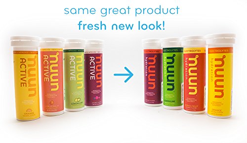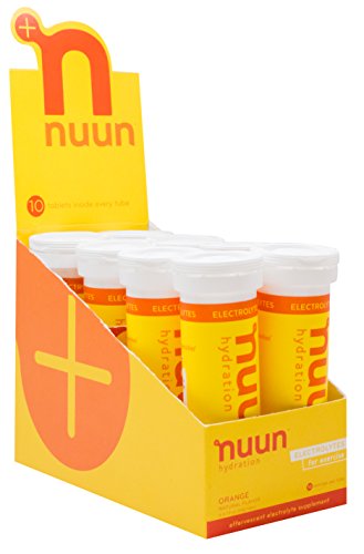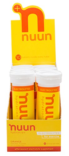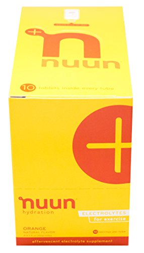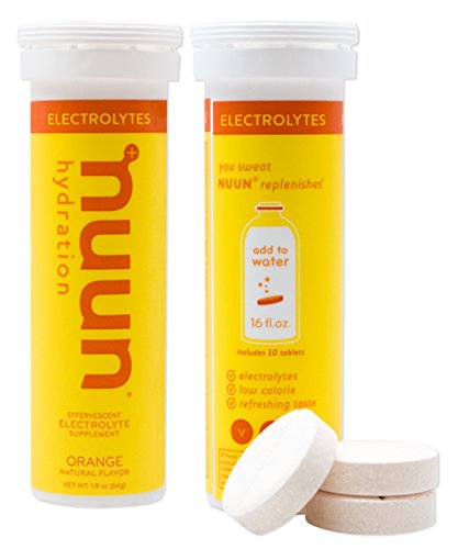 Nuun Hydration: Electrolyte Drink Tablets for Exercise & More. Flavor: Orange, Box of 4 Tubes (40 Servings). 1g Sugar, Low Calorie (10), Gluten Free, Vegan. Potassium, Magnesium, Sodium & Calcium