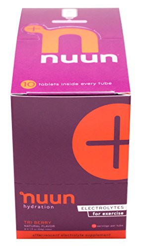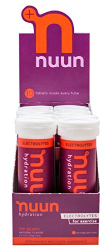 Nuun Hydration: Electrolyte Drink Tablets for Exercise & More. Flavor: Tri-Berry, Box of 8 Tubes (80 Servings). 1g Sugar, Low Calorie (10), Gluten Free, Vegan. Potassium, Magnesium, Sodium & Calcium