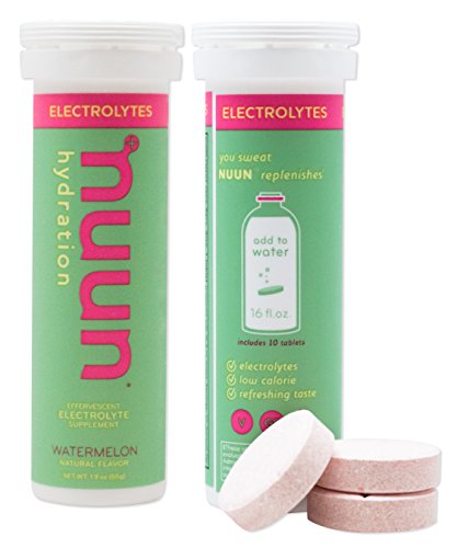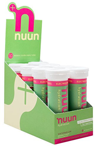 Nuun Hydration: Electrolyte Drink Tablets for Exercise & More. Watermelon, Box of 8 Tubes (80 Servings). 1g Sugar, Low Calorie (10), Gluten Free, Vegan. Potassium, Magnesium, Sodium & Calcium