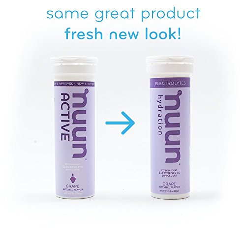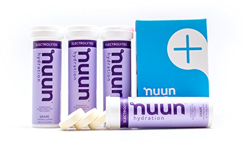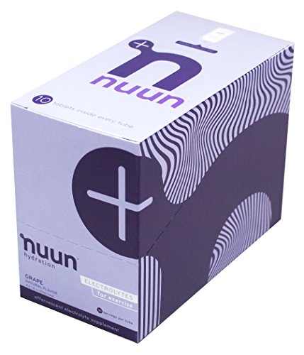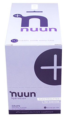 Nuun Hydration: Electrolyte Drink Tablets for Exercise & More. Flavor: Grape, Box of 4 Tubes (40 Servings). 1g Sugar, Low Calorie (10), Gluten Free, Vegan. Potassium, Magnesium, Sodium & Calcium