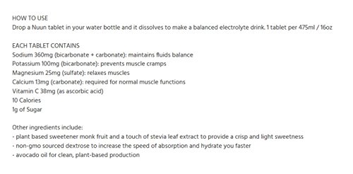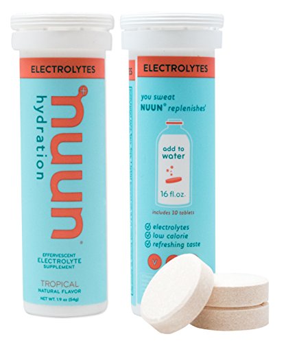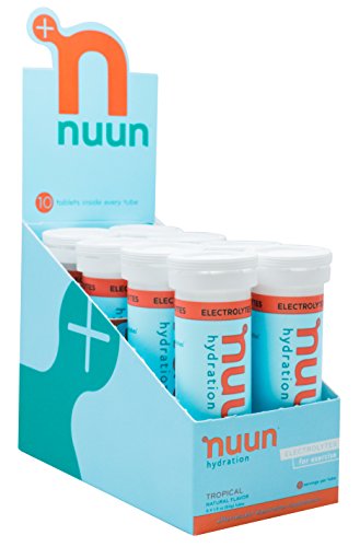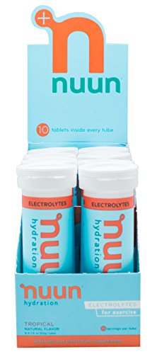 Nuun Hydration: Electrolyte Drink Tablets for Exercise & More. Flavor: Tropical, Box of 8 Tubes (80 Servings). 1g Sugar, Low Calorie (10), Gluten Free, Vegan. Potassium, Magnesium, Sodium & Calcium