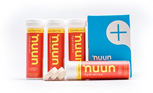 Nuun Hydration: Electrolyte Drink Tablets for Exercise & More. Citrus Fruit, Box of 4 Tubes (40 Servings). 1g Sugar, Low Calorie (10), Gluten Free, Vegan. Potassium, Magnesium, Sodium & Calcium