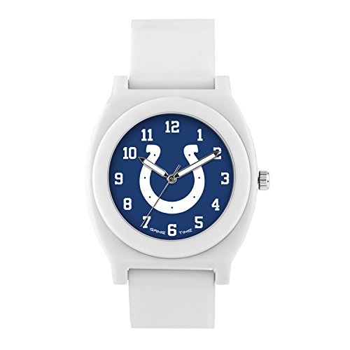 Game Time Women's 'FAN' Quartz Plastic and Rubber Casual Watch, Color:White (Model: NFL-FNW-IND)