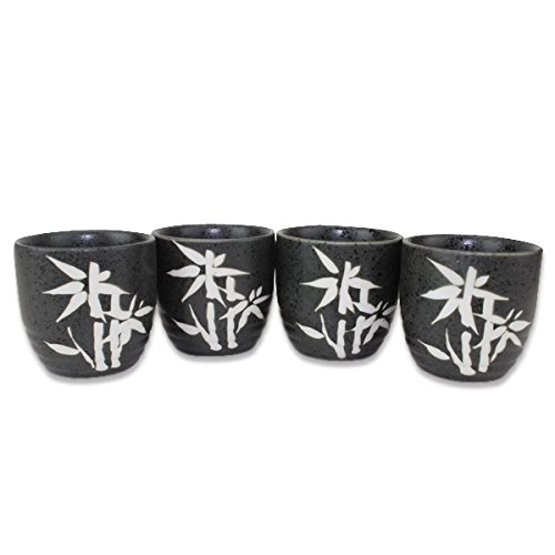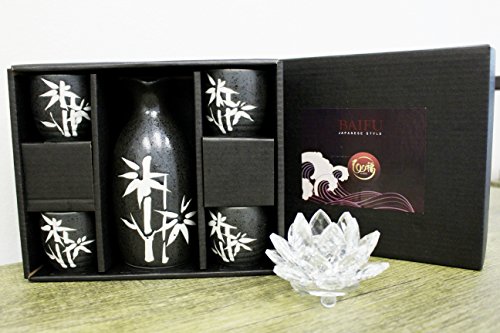 (BaiFu)/Kitchen Dining/Tableware/DIRECT FROM USA/Traditional Porcelain Black Bambo Sake Set 4 Cups 1 Decanter / Carafe / Sake Set / House warmin...