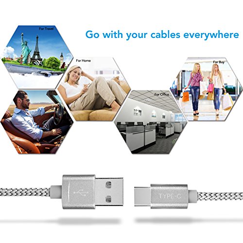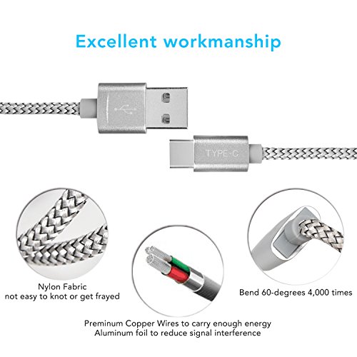 USB Type C Cable Cord[2 pack],Uses 56K Resistor,for OnePlus 3,Nexus 6p/5x,Lumia 950xl/950,new MacBook and Other Supported Devices(6.6 Ft)(silver+gray)