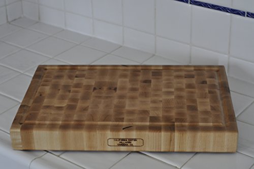 Large Wood End Grain Cutting Board With Juice Groove - 18x12x2 Reversible Maple Butcher Block Made in the USA by California Custom Millwork