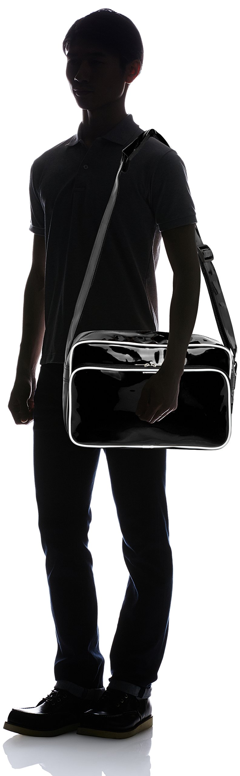 In addition to a firm form of the entire shoulder bag with a solid feeling, detail with consideration of usability such as a large outside pocket is a point.