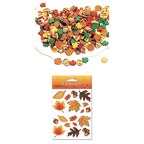 Autumn HARVEST Craft & Sticker Set - 500 FOAM Fall BEADS & 72 Stickers LEAVES Foliage - Leaf KID'S Activity TEACHER Scouts