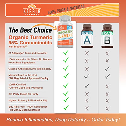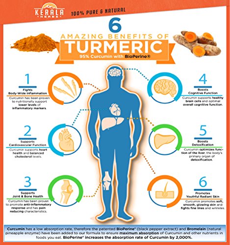 -. Title : Kerala Herbs TURMERIC CURCUMIN 180ct 2100mg BioPerine 95% Curcuma Longa Best Absorption w Black Pepper Extract, Anti-Inflammatory, Joint Pain Relief, Immune System Liver Detox Booster Organic Capsules