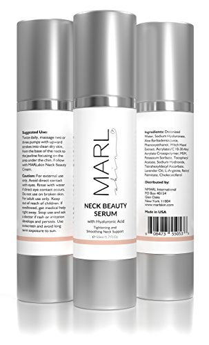 -. Feature : ENHANCE ELASTICITY OF FRAGILE NECK SKIN: Neck skin is naturally thinner and lacks natural oils, so it requires specialized care that other skincare products can't provide. MARLskin Beauty Neck Serum smoothes and firms delicate neck, chin, and décolleté. / INTENSELY MOISTURIZING WITH HYALURONIC ACID: MARLskin is formulated to deal specifically with the unique needs of the fragile neck area with Hyaluronic Acid - ingredient known to hydrate and revitalize skin's layers like no other. / FIRMER, TONED NECKS LOOK YEARS YOUNGER: No matter how great your face looks, a sagging neck can make you look much older. MARLskin helps lift, tighten, and tone sagging skin while gently smoothing lines and wrinkles. / ANTIOXIDANT DEFENSE: Promotes a healthy neck skin barrier that looks and feels softer, smoother, and tighter skin-- all hallmarks of younger-looking skin. / 100% MONEY BACK GUARANTEE: We're sure you're going to adore the way your neck, chin and décolleté look after using MARLskin - so we're making you this promise: if you don't love how you look, let us know within 60 days. You'll get your money back.