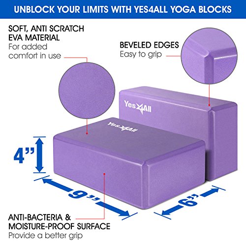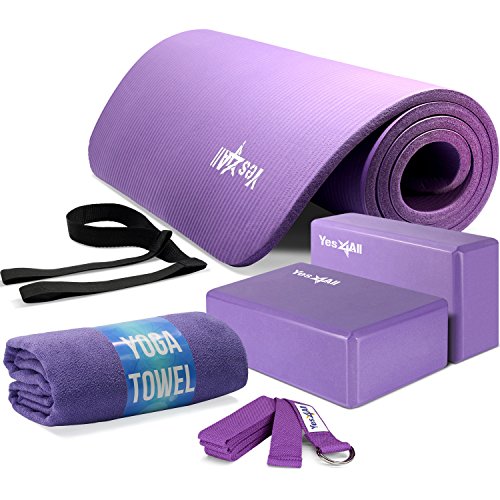 Yes4All Yoga Starter Kit – Include: 2 Yoga Blocks, Yoga Strap, Yoga Towel & Exercise Yoga Mat (NBR or PVC Material)