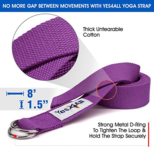 - 8FT ADJUSTABLE YOGA STRAP FOR BETTER ALIGNMENT: Feature soft durable cotton fabric for added comfort against skin & strong D rings easy to thread & secure. Designed to enhance flexibility, Yoga practices, stretching and reduce injury risks