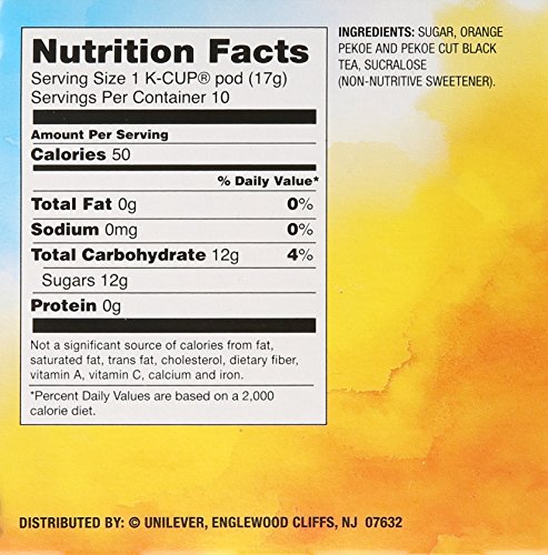 -. Feature : 50 calories per k-cup pack / Made with fresh-pressed tea leaves / Made from young tea leaves and cane sugar / Rainforest alliance certified / Kosher