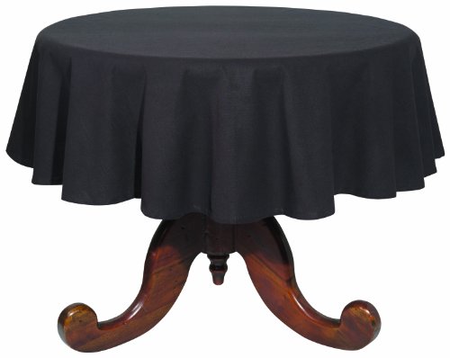 - Feature : Tablecloth measures 60-inch round / Solid black color / Designed to fit tables measuring up to 48-inch round / Made of 100 percent cotton / Machine washable