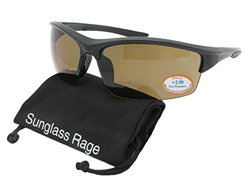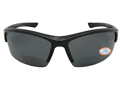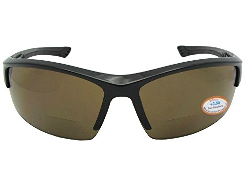 Stylish semi rimless wrap around bifocal sunglasses. The bifocal is smaller than most bifocals and mounted on the inner side of the lenses which makes them not as noticeable to others. These are nearly perfect for driving because they keep the light out from all sides and the bifocal sits low enough to where it is not in your line of vision. This style is great for active people that hate to remove their glasses to read while out in the sun, you will only need the one pair of glasses. The nose pads and temple ends are rubber which help keep the sunglasses in place. This frame fits a medium to slightly bigger size face best. Measurement 5 1/4 Inch Width x 1 3/4 Inch Height 5 Inch Long Temple Length 0 |