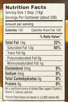 -. Feature : Versatile organic cooking oil! / Great Buttery Flavor / Colored with Beta Carotene